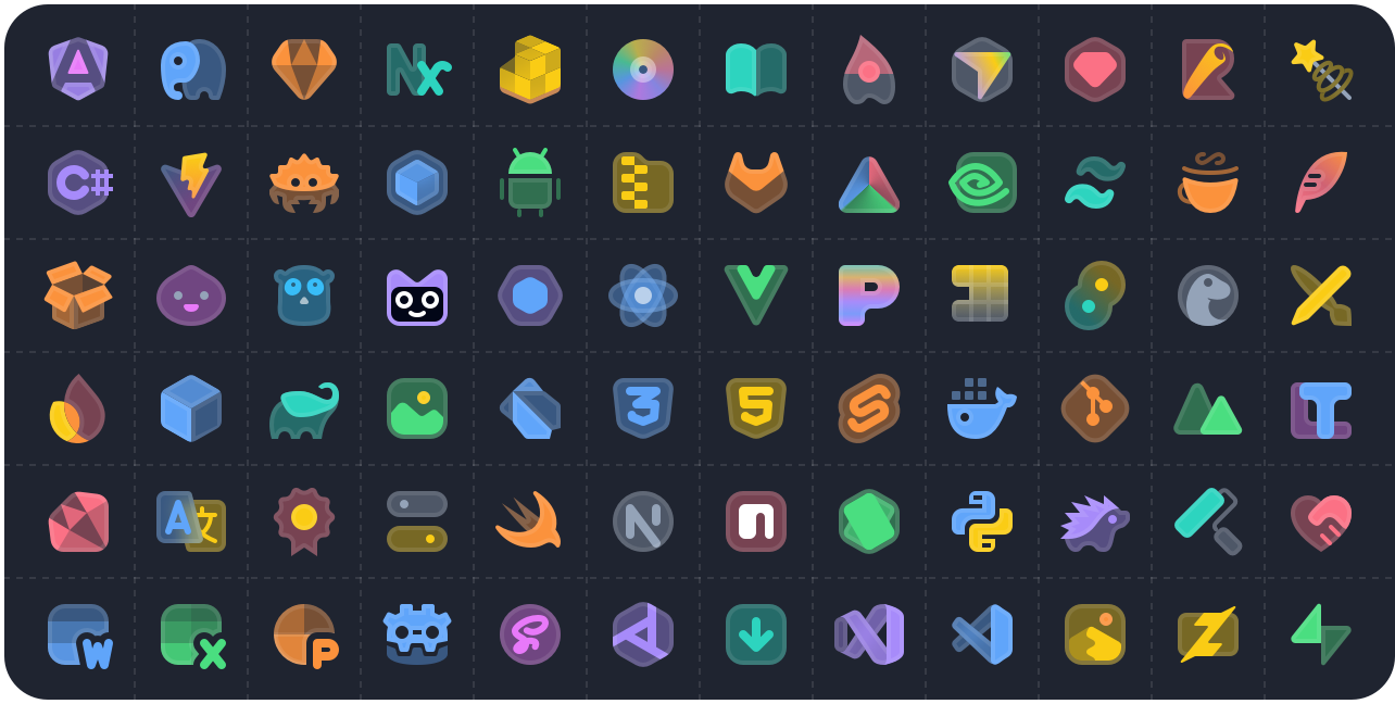 A premium VSCode icon pack with hundreds of file type and folder icons. Supports multiple folder color schemes (blue, brown, gray, green, and seven more), customizable arrows and folder icon display, with a consistent and highly recognizable style. Free base version; the complete pack is $5 with future updates included. Note: the original doesn't support Zed — a community fork fixes that.